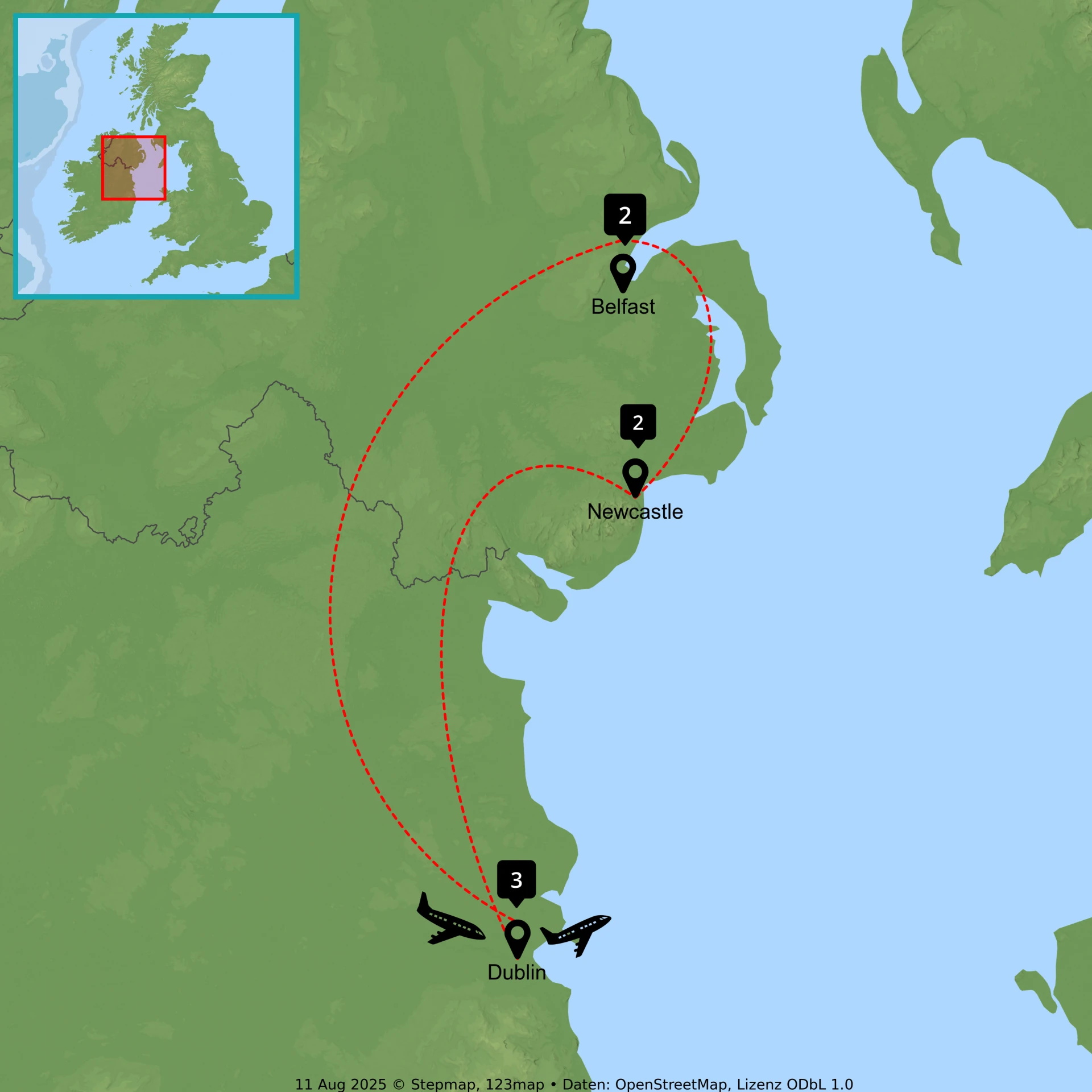 • Depart Dublin and drive to Newcastle, Northern Ireland